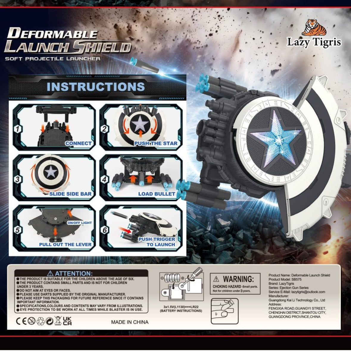 Overall, this shield blaster toy combines safe, durable construction with interactive features to provide a fun, immersive, and creative play experience for kids